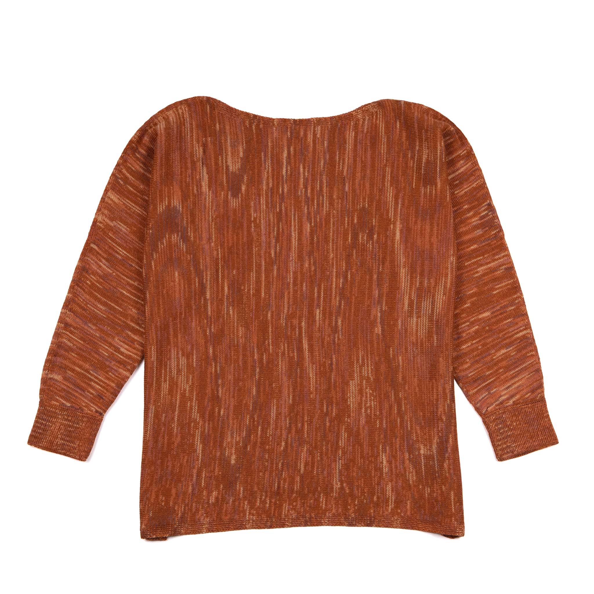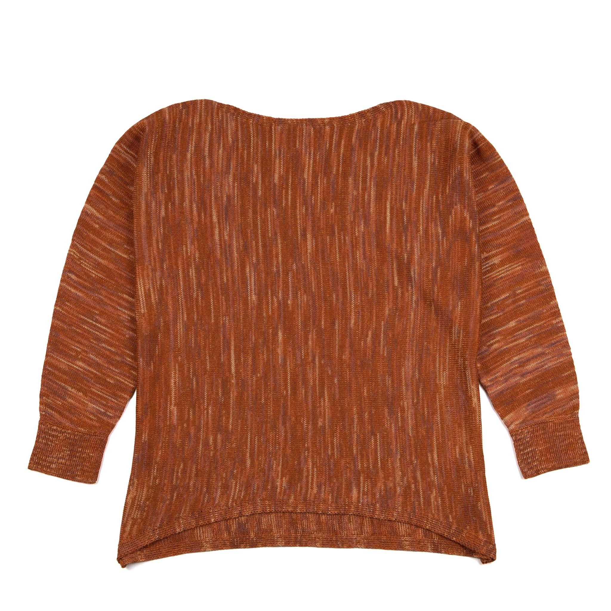 Dunkelorange-farbiges Textil mit Akzenten der Sumita Tunika aus 100% Babyalpaka